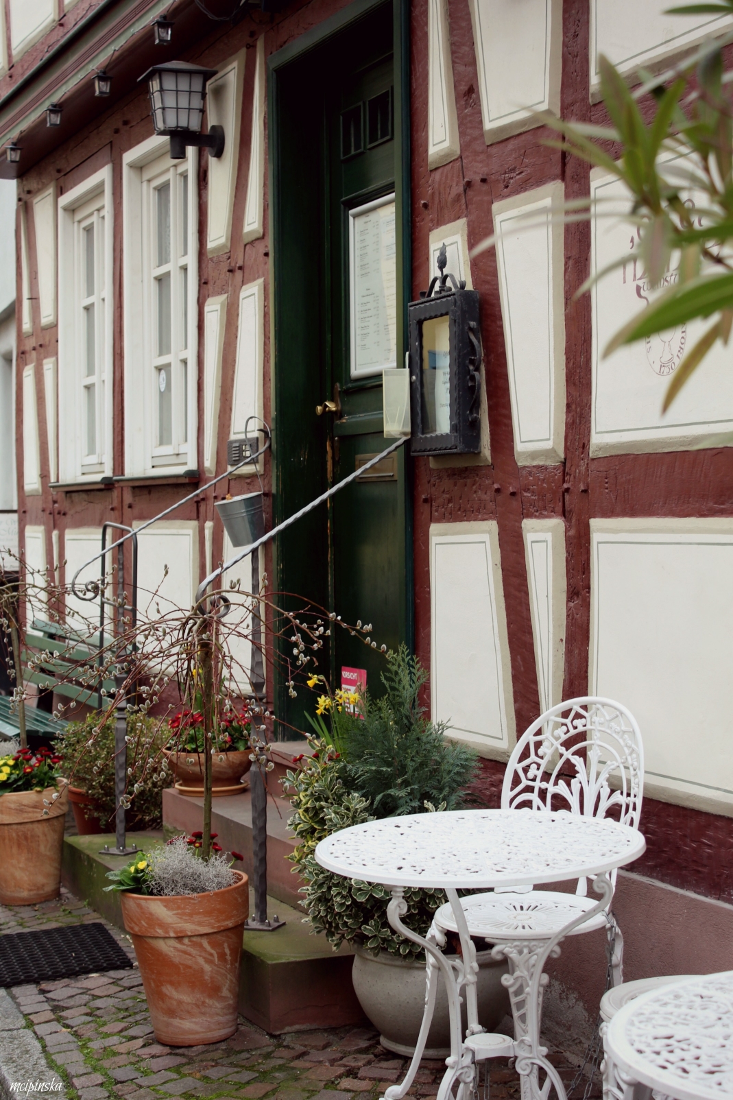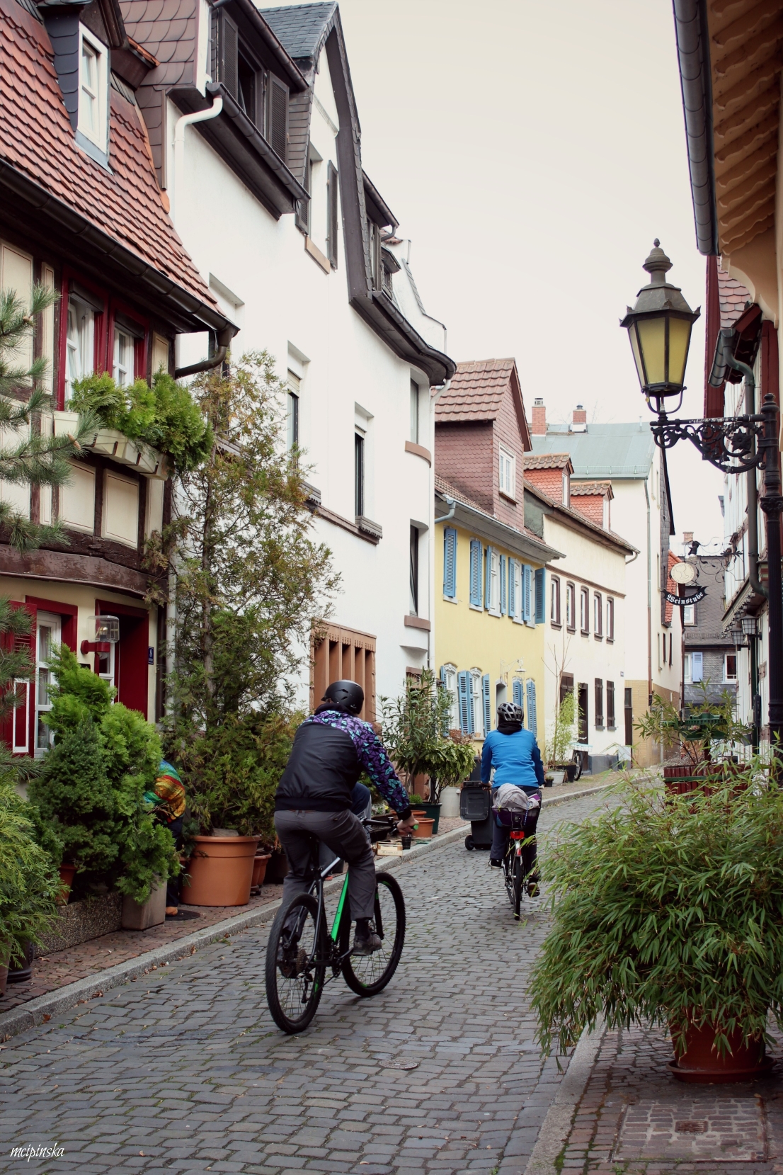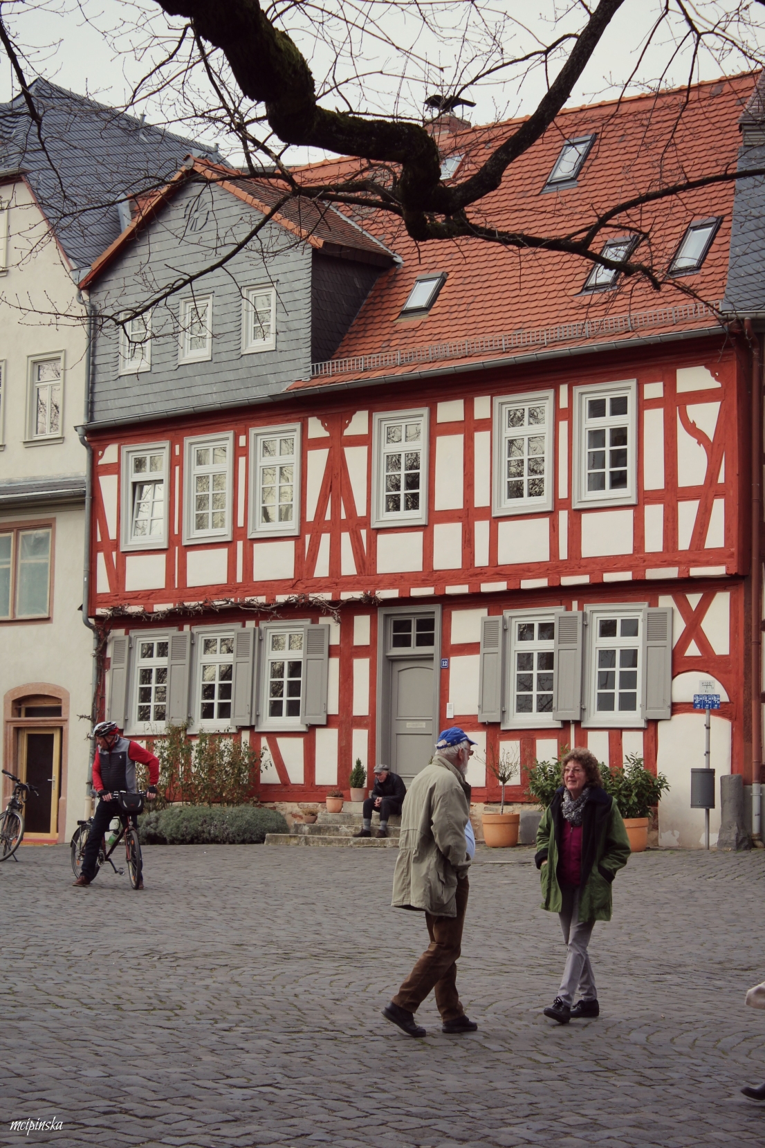 My main impression is that it is a place of contrasts. It is part of Frankfurt metropolis, but remains peaceful and keeps its own small town identity. The medieval character of the city is mixed with modern industry. On the streets of old town with timber-framed houses, fancy and expensive cars are parked. Beautiful landscape with a river is crossed by the highway. Skyscrapers on the horizon contrast nicely with green trees of the park.