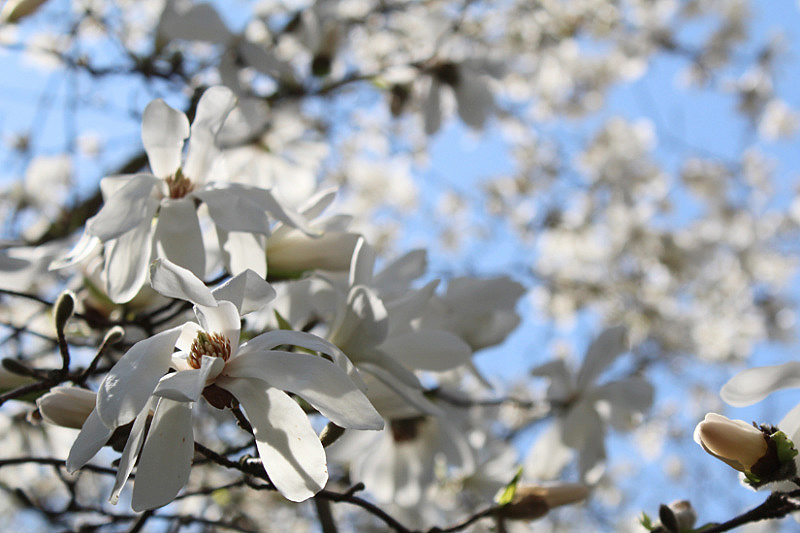 April is probably the best time for daffodiles, cherry trees, grape hyacinths and magnolias. The collection in Schwetzingen includes e.g. Magnolia x loebneri with prestigous Award of Garden Merit.