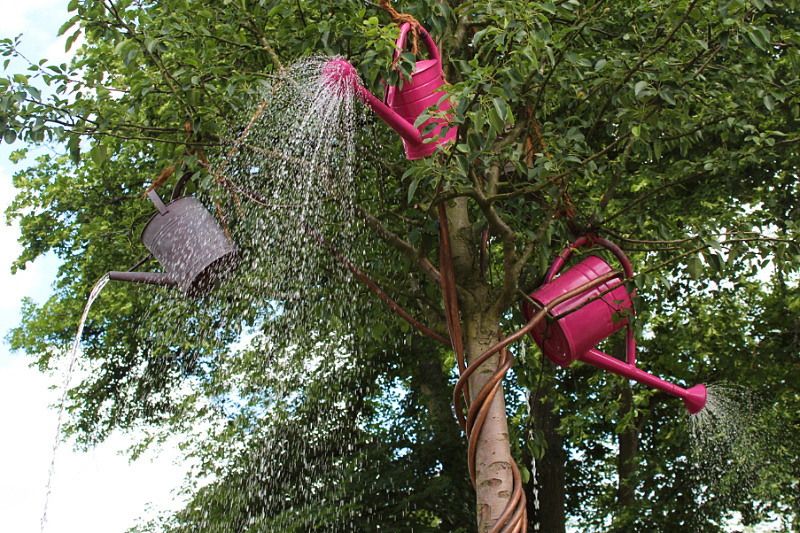 No flowers – no garden. So all the walking paths were beautifully decorated with different plant species. Another interesting part of the exhibition were modern garden designs. Everyone could enter the arranged small gardens, sit inside and get a sketch of the garden plan. My favorite motive this time were glass decorations, which reflect light. Not only gardens but also balconies were presented. Also the little ones could paint and decorate the flower pots.