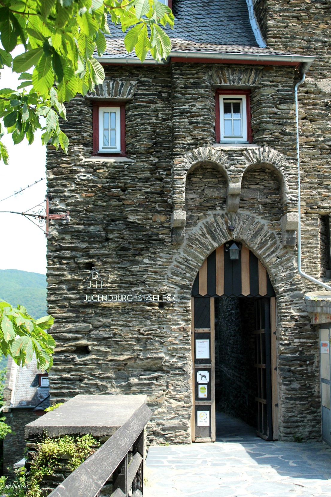 The best place to start the trip is the Burg Stahleck. It is already an interesting spot itself. If you ever dream about a night in the castle this one offers it at quite affordable price, since it hosts the Jugendherberge hostel. It can be reached by car or by walking from the city through Wernerkapelle. There is also a little bar at the courtyard and a terrace with tables and wonderful view to the Rhine river. The medieval character of Bacharach can be appreciated among those old walls. There is also a toilet inside, which might be the only one on the way and it is also the last chance to buy snacks and drinks – no shops available on the trail.