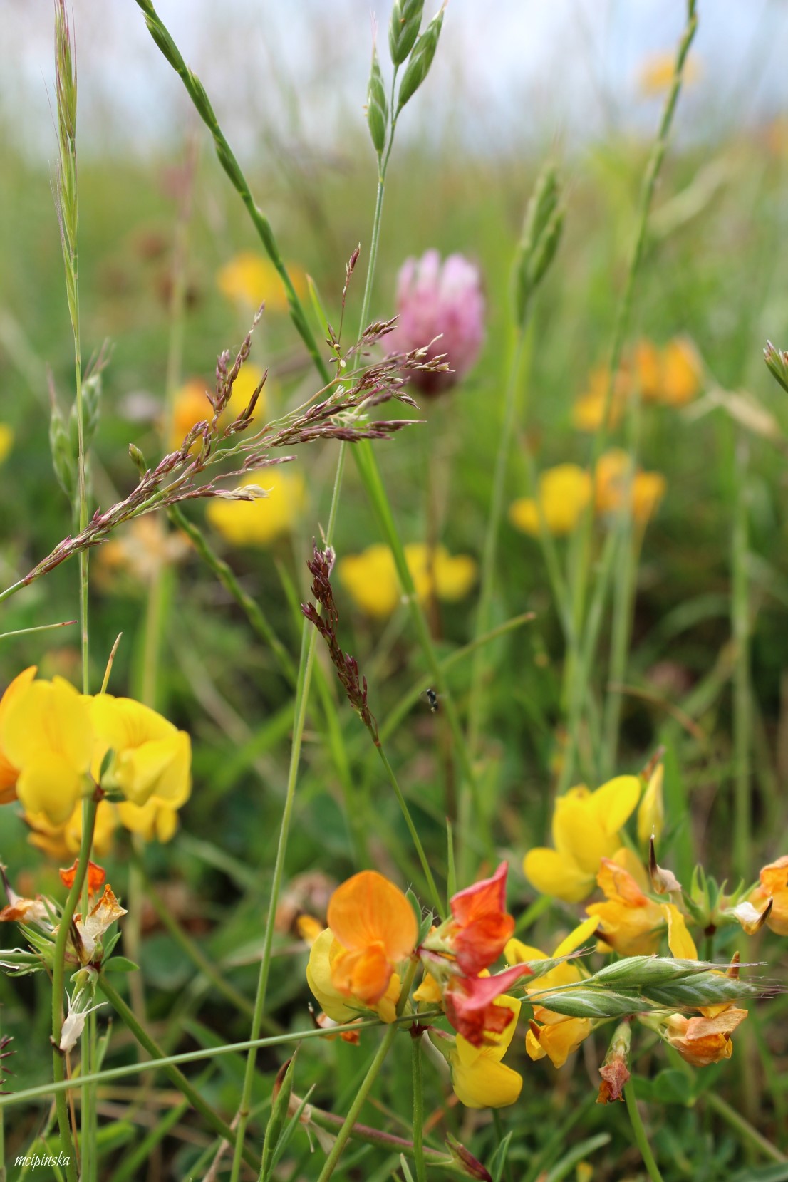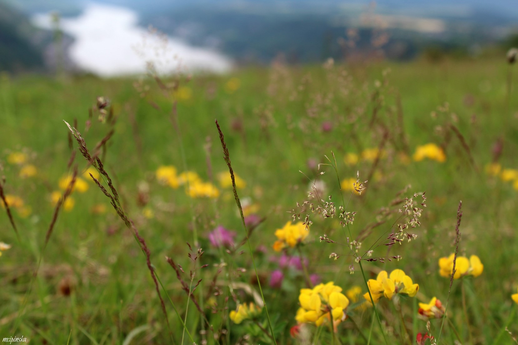 After the visit to the ruins it is already more than half a way, but still the highest point is in front of us. The next stage leads through the most beautiful meadows. All colorful flowers look just amazing. It is the great place to make another stop and just sit for some time. The shape of ground is not flat anymore but a bit concave and there are some windmills on the horizon reminding that somewhere near there is still a civilized world.
