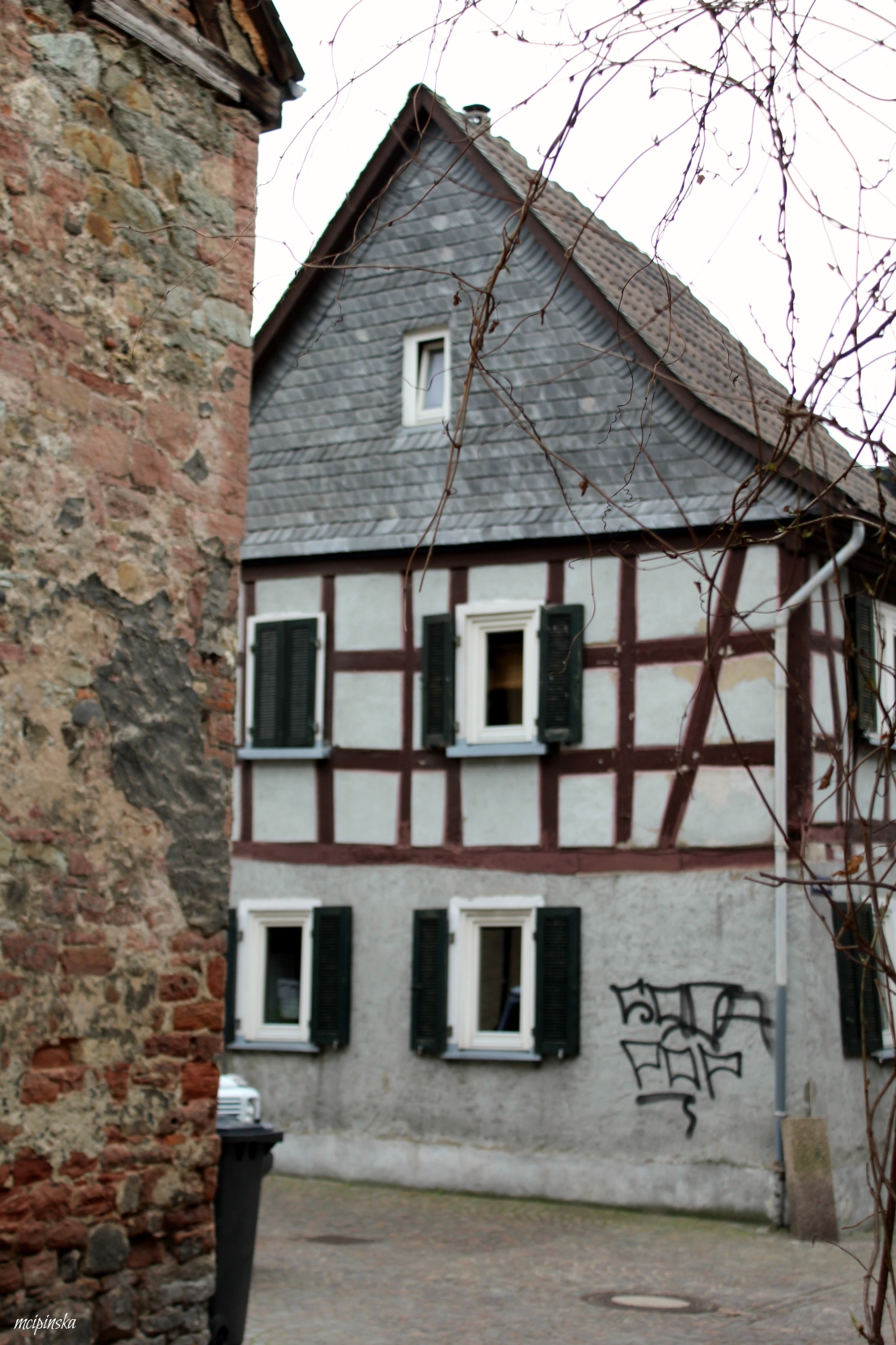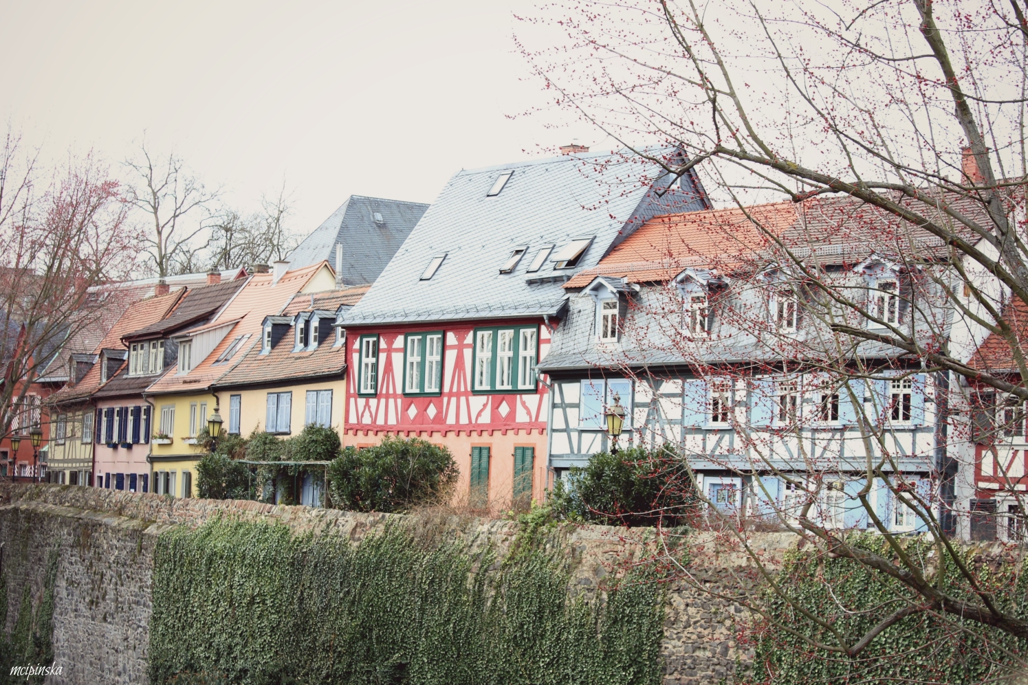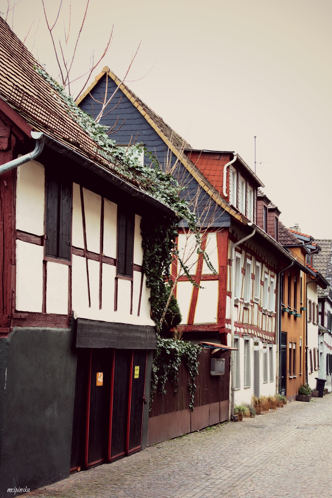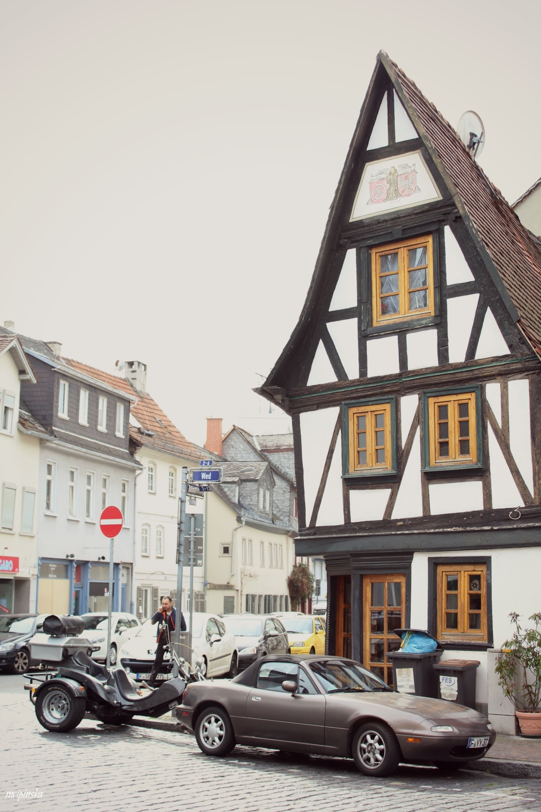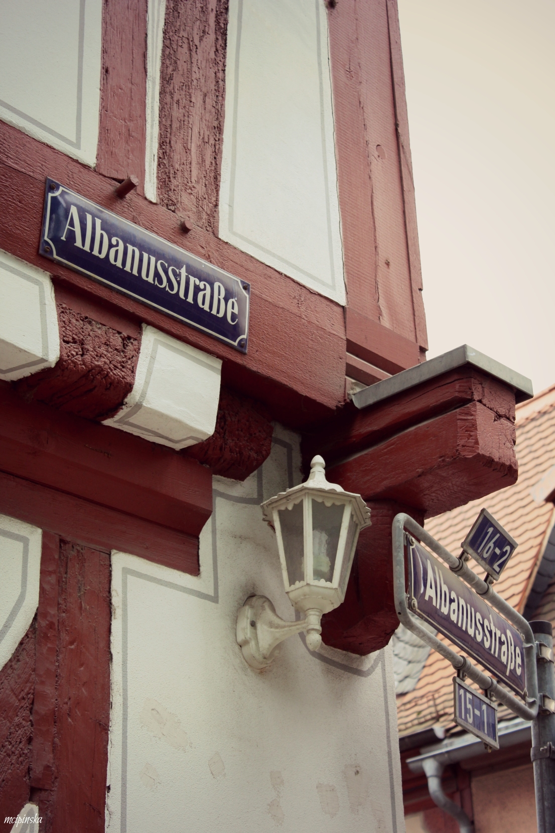 My main impression is that it is a place of contrasts. It is part of Frankfurt metropolis, but remains peaceful and keeps its own small town identity. The medieval character of the city is mixed with modern industry. On the streets of old town with timber-framed houses, fancy and expensive cars are parked. Beautiful landscape with a river is crossed by the highway. Skyscrapers on the horizon contrast nicely with green trees of the park.