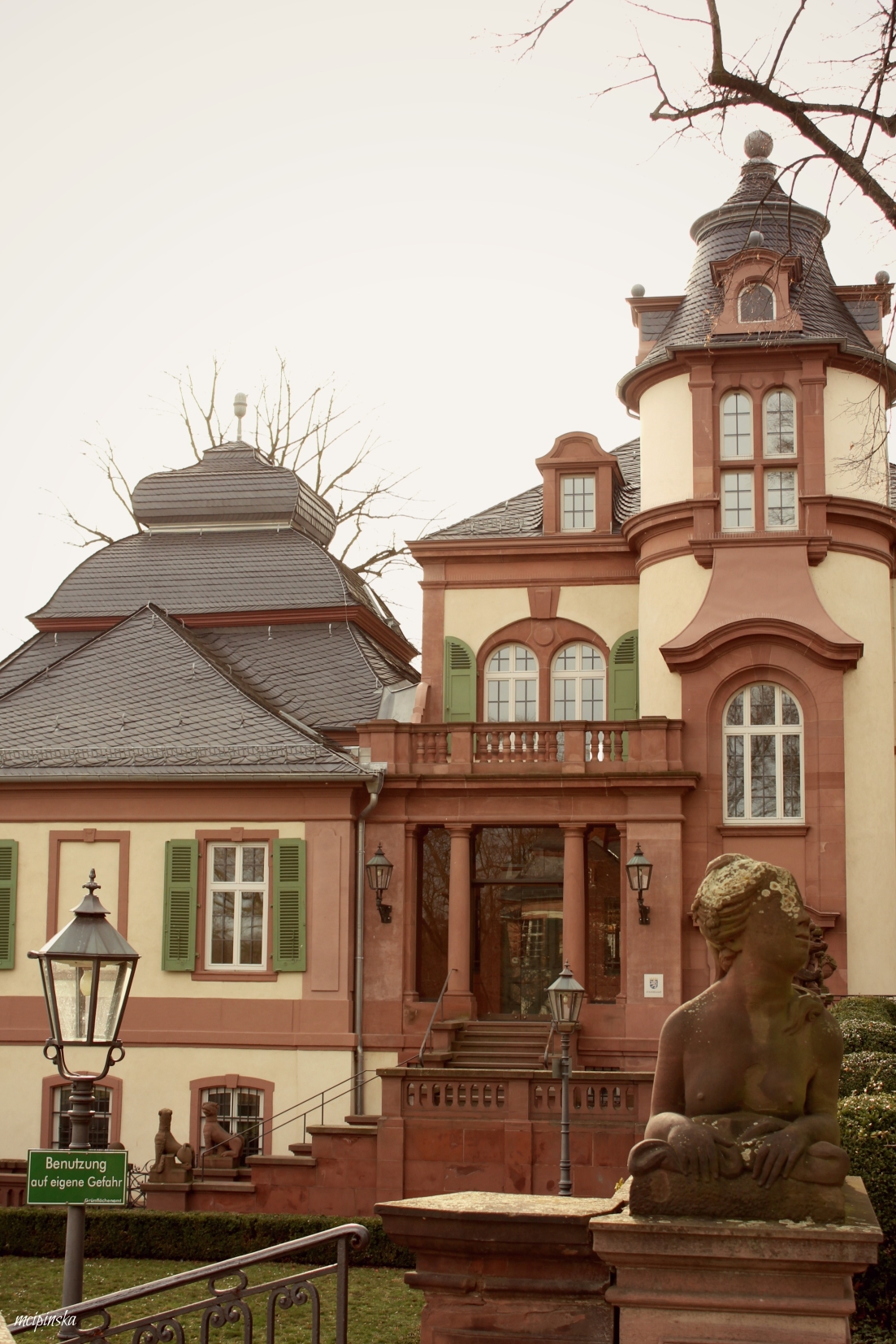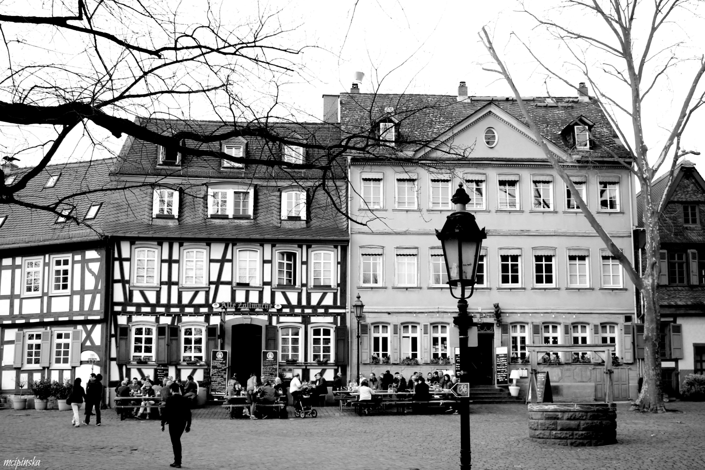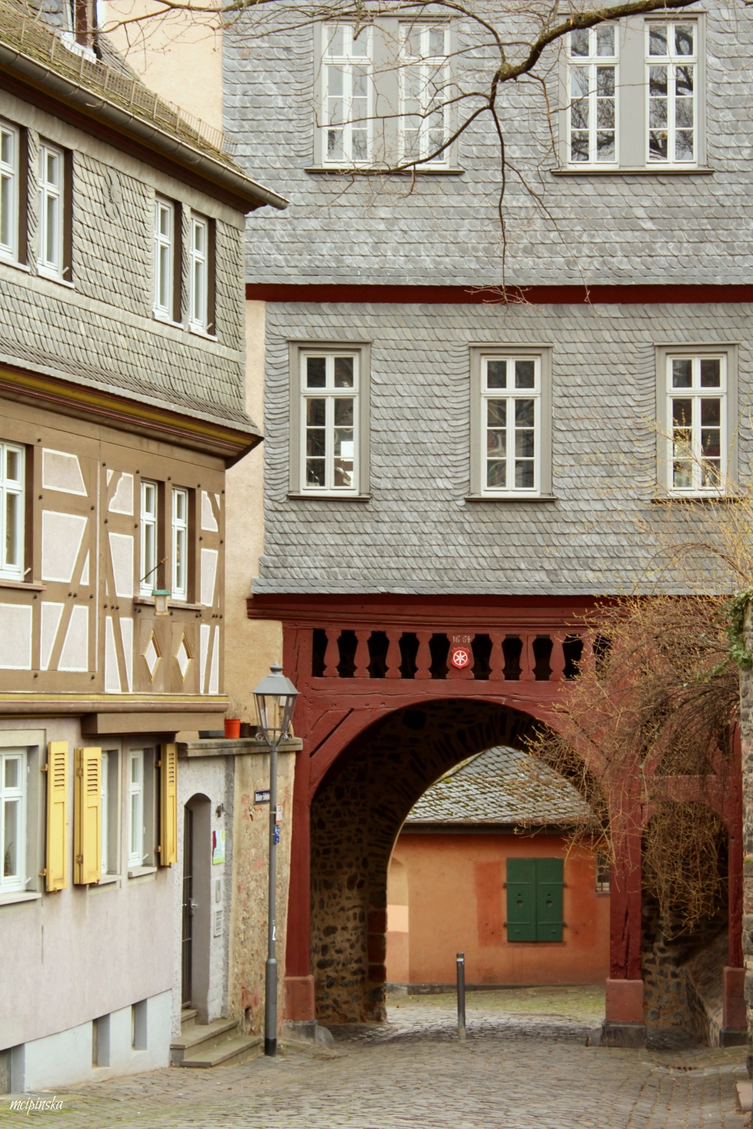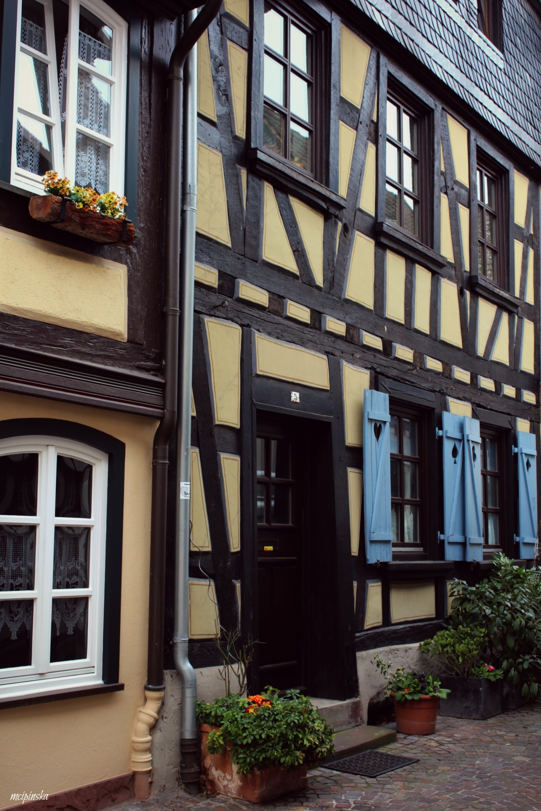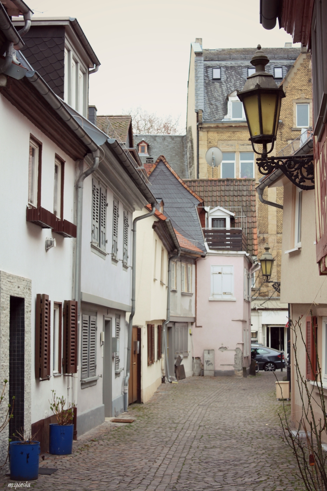 My main impression is that it is a place of contrasts. It is part of Frankfurt metropolis, but remains peaceful and keeps its own small town identity. The medieval character of the city is mixed with modern industry. On the streets of old town with timber-framed houses, fancy and expensive cars are parked. Beautiful landscape with a river is crossed by the highway. Skyscrapers on the horizon contrast nicely with green trees of the park.